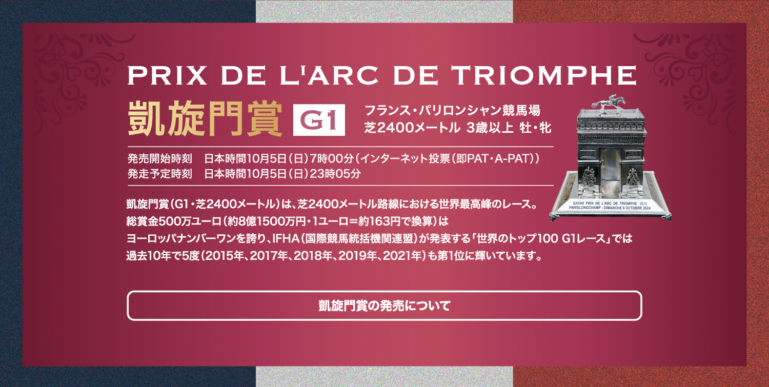 JRAインターネット投票でご購入いただいた、10月5日(日)にフランスで開催される「凱旋門賞」の馬券であれば有効です。